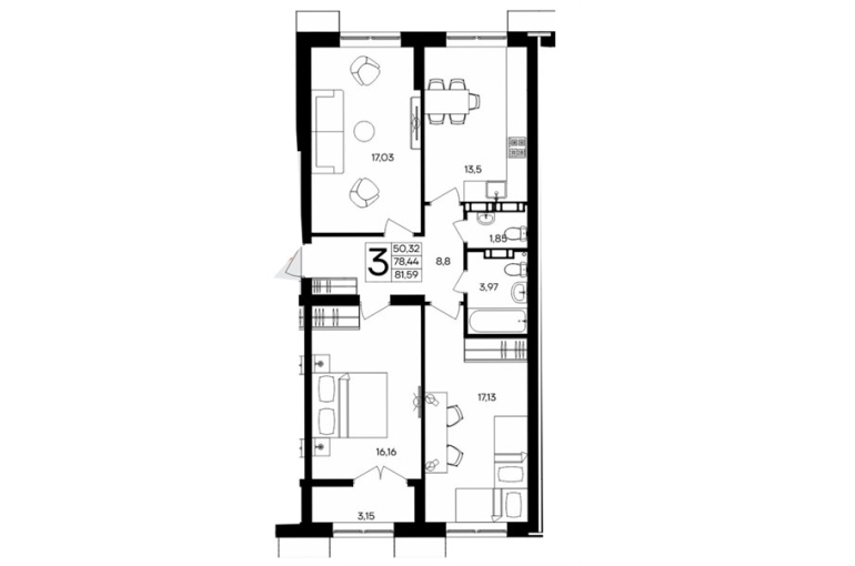 Площадь: 81.59 м²