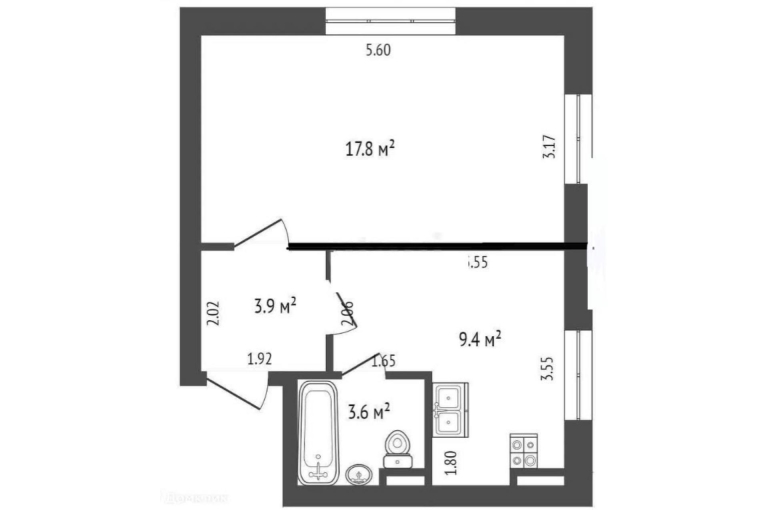 Комната просторная и светлая-17,8 кв.м., окна выходят в тихий двор,кухня площадью 9,4 кв.м. В квартире недавно делался косметический ремонт. Отопление центральное, горячая вода от бойлера в ванне и на кухне, газовая плита.