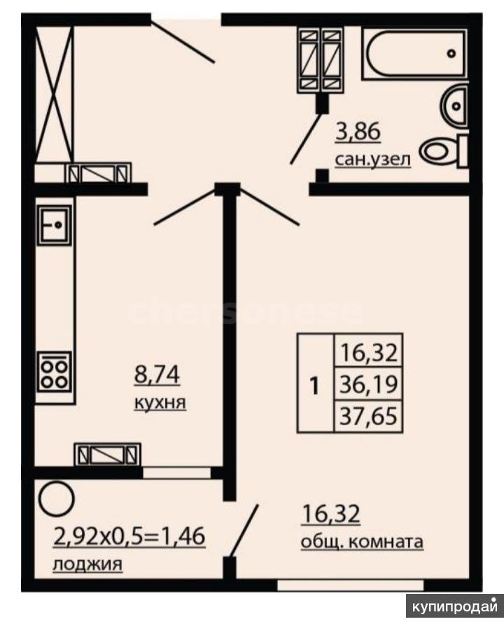 Продажа однокомнатной квартиры 37 кв.м., 9/10 этаж на улице Горпищенко.