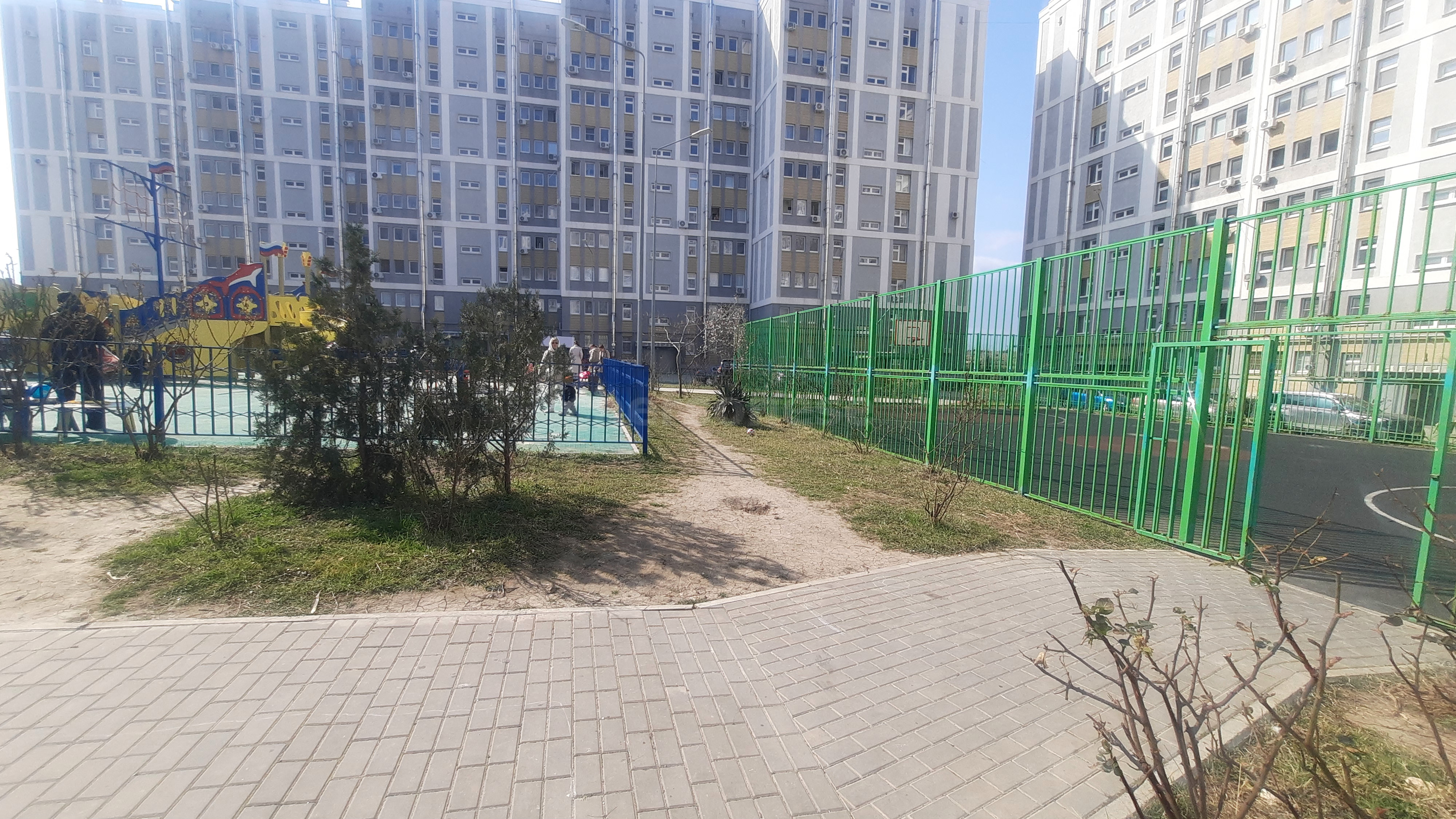 Прекрасный двор с детскими и спортивными площадками. Сразу за комплексом парковка и уютный пляжик с детской площадкой и даже местом для рыбаков.
