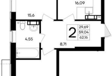Площадь: 62.16 м²