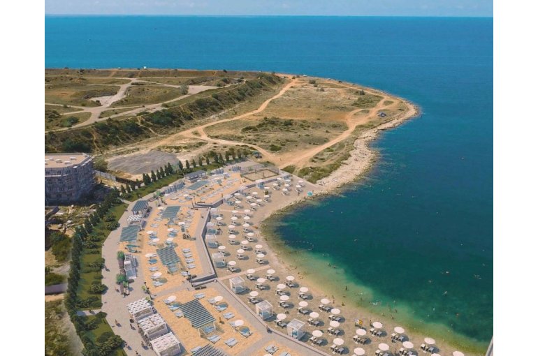 Жилой комплекс на берегу бухты Омега в Севастополе сочетает природу и комфорт. Современный пляж рядом. Архитектура в стиле неоклассицизма с колоннами и симметричными формами. Во дворе игровая зона, тренажеры, стоянка для велосипедов.