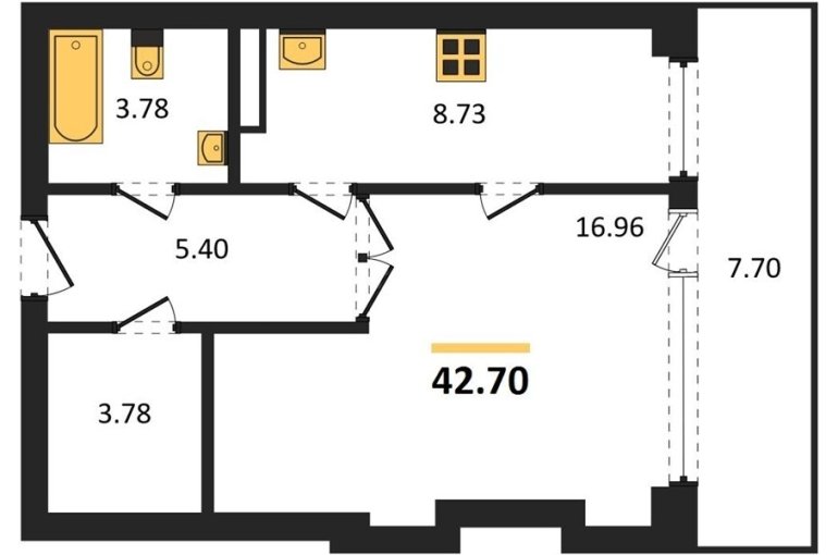 | Площадь, кв.м. | 42.7 |