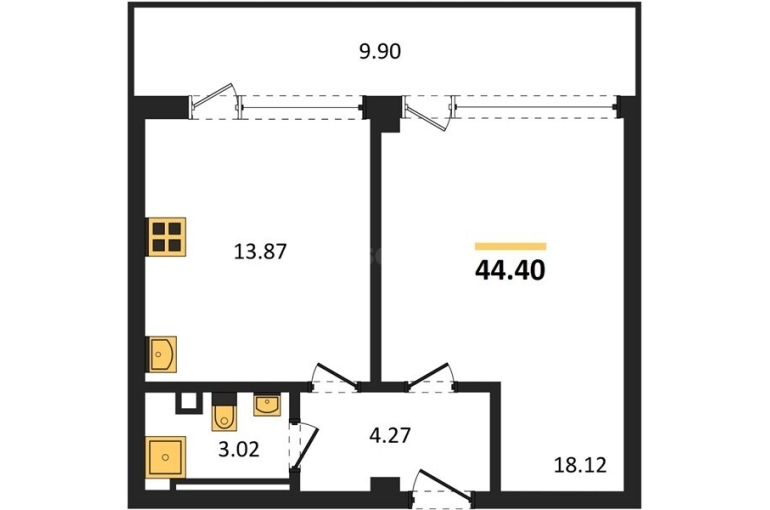 Площадь: 44.4 м²