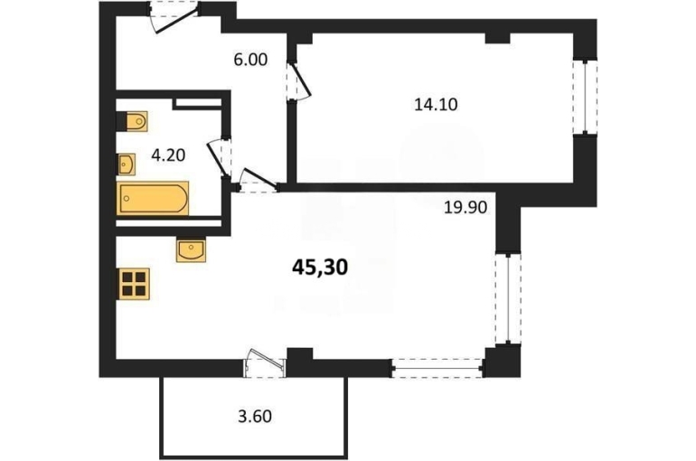 | Площадь, кв.м. | 45.3 |