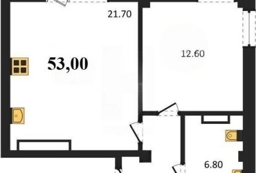 В продаже имеются квартиры в жилом комплексе "Доброгород" премиум-класса. Общая площадь составляет 53,0 кв.м., при этом кухня - 21,7 кв.м. Высота потолков достигает 2,8 м.