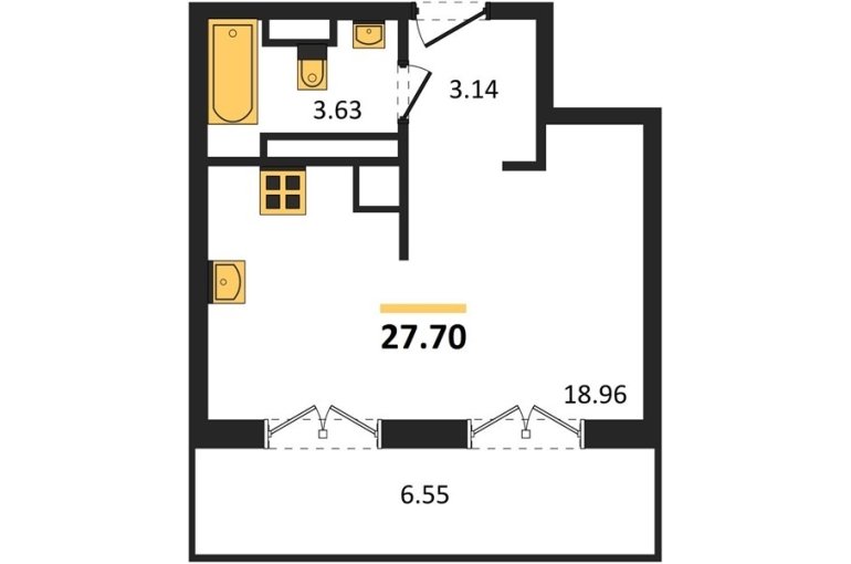 Площадь: 27.7 м²