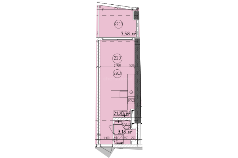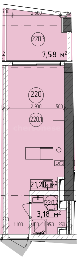 В продаже имеются апартаменты с полной отделкой, бытовой техникой, текстильным инвентарем и мебелью в жилом комплексе "Cosmos Stay" премиум-класса. Общая площадь составляет 31,96 кв.м., при этом кухня занимает 21,2 кв.м. Все окна выходят на одну сторону. В квартире есть лоджия и санузел. Высота потолков достигает 2.9 м.
