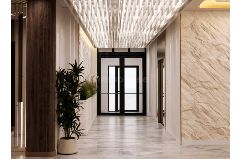 В продаже имеются апартаменты с полной отделкой, бытовой техникой, текстильным инвентарем и мебелью в жилом комплексе "Cosmos Stay" премиум-класса. Общая площадь составляет 33,68 кв.м., при этом кухня занимает 21,18 кв.м. Все окна выходят на одну сторону. В квартире есть лоджия и санузел. Высота потолков достигает 2.9 м.