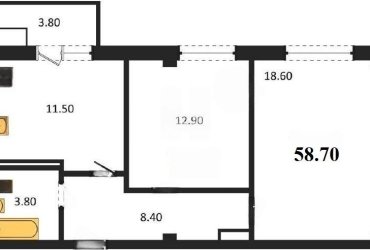 Площадь: 58.7 м²