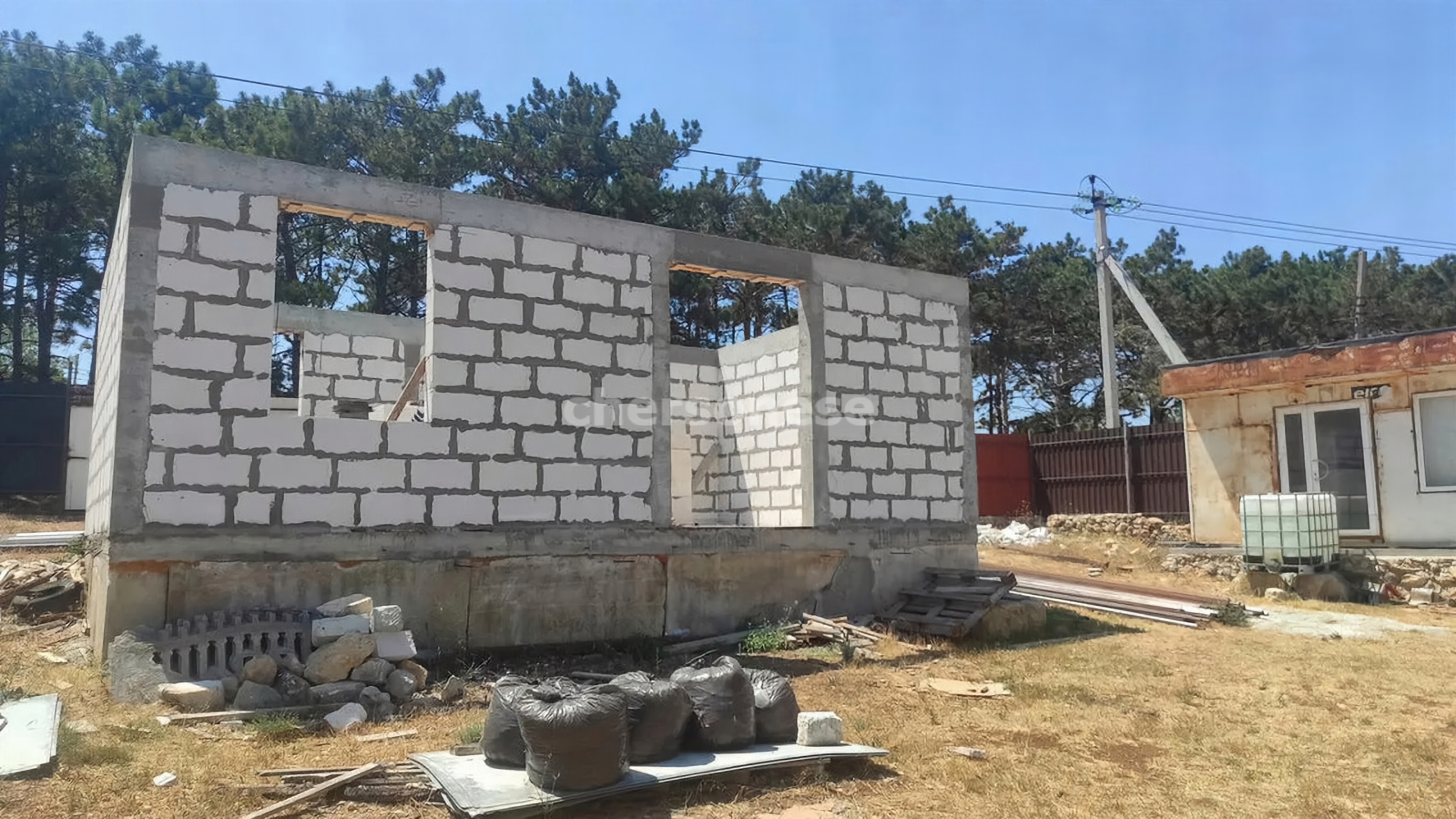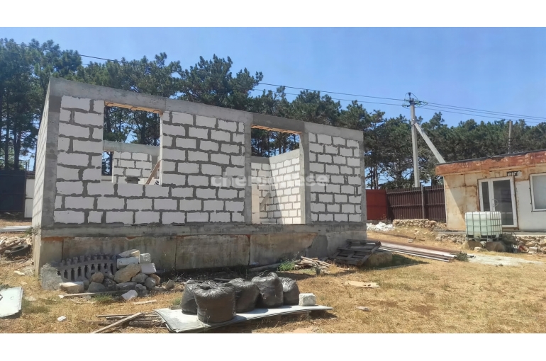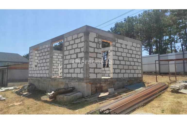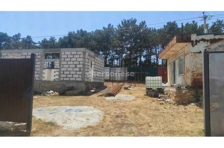 На участке есть недостроенный дом новой постройки 6 на 9, бетонный септик, капитальная хоз.постройка, утеплённый вагончик 3 на 6 (можно использовать как временное жильё), бак для воды на 5 кубов.
