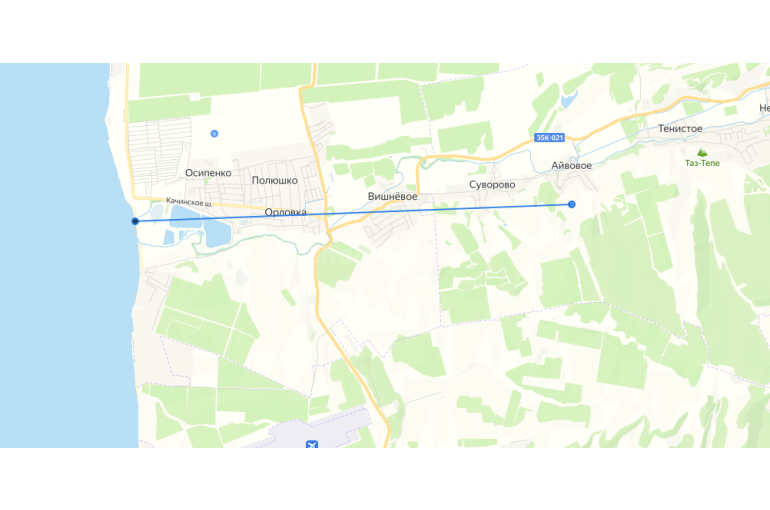 До шикарного пляжа в с.Орловка 10 мин. на авто. или 7,7 км.
